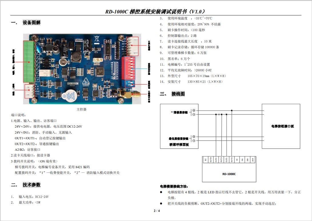 RD-2000A 梯控系統(tǒng)安裝調試說明書(V1.1)